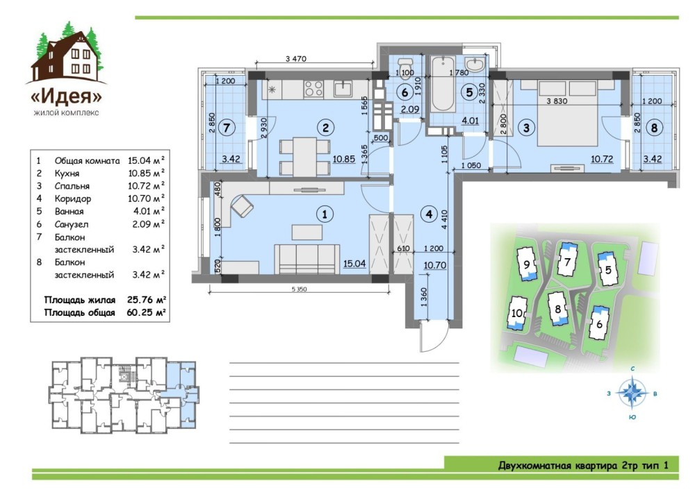 М.Бориспольская 5км, ЖК Идея 2х комнатная