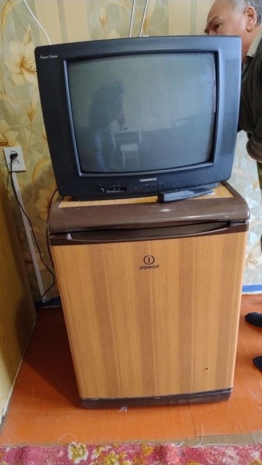 Є маленький холодильник телевізор. Своєї пралки немає.