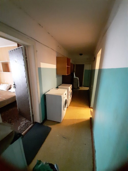 У кімнаті необхідні меблі,  є пральна машинка, холодильник.
