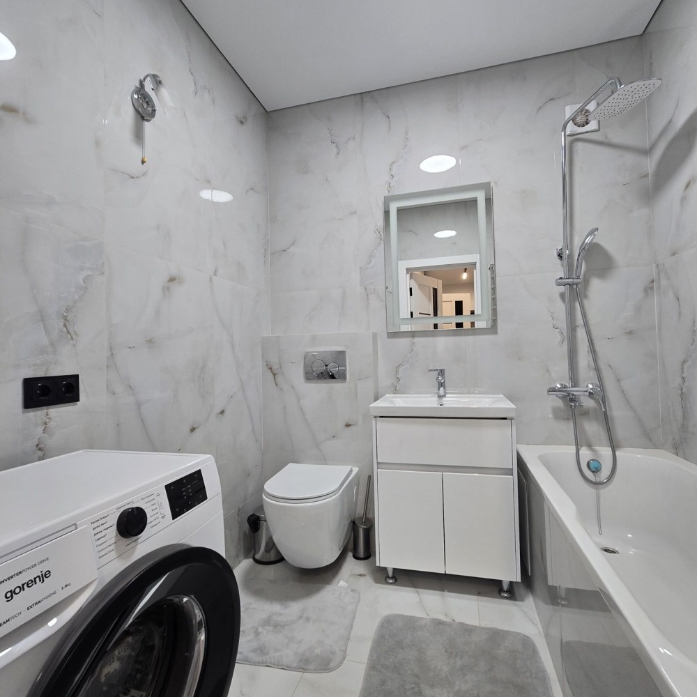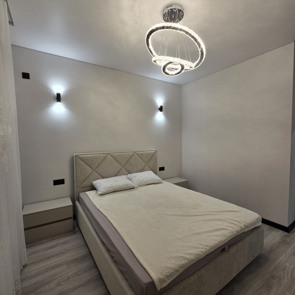 Сучасна двокімнатна квартира в житловому комплексі на березі озера. Квартира обладнана меблями та сучасною побутовою технікою. Зручне розташування в житловому комплексі з розвиненою інфраструктурою.