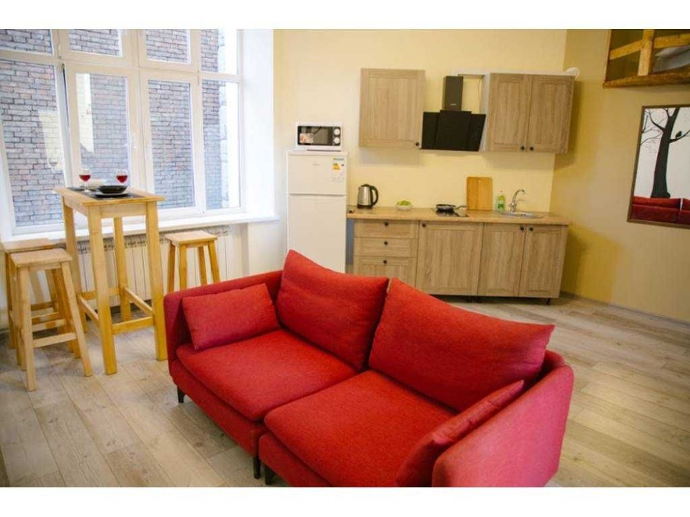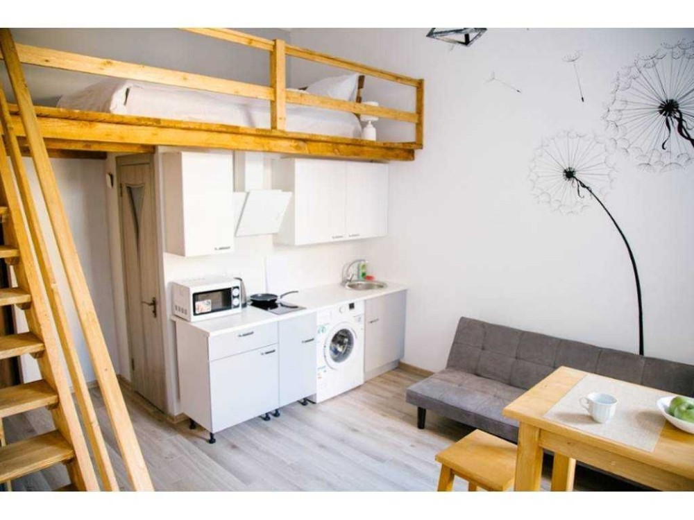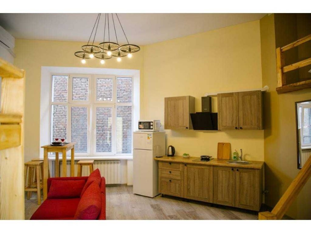 Все апартаменты двухуровневые - полноценные квартиры с кухней, сан. узлом, мебелью, бытовой техникой, кондиционерами. Спальное место на втором уровне.
