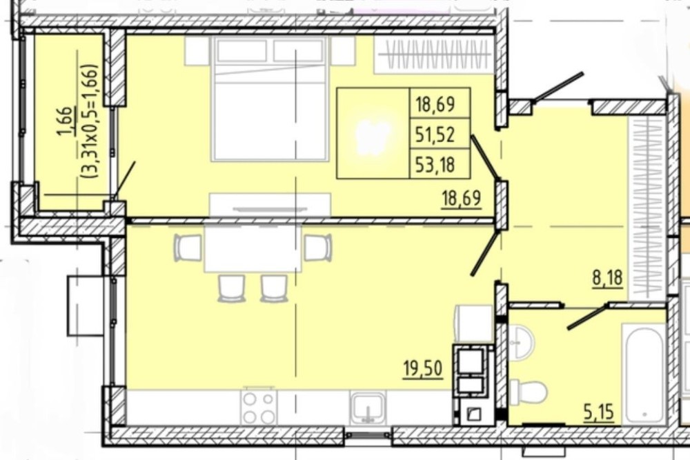 • Общая площадь 54 м2