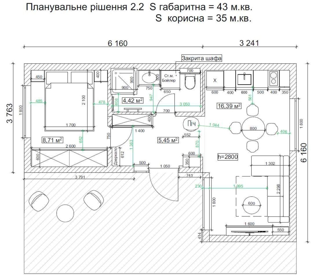 • Загальна площа 43 м2