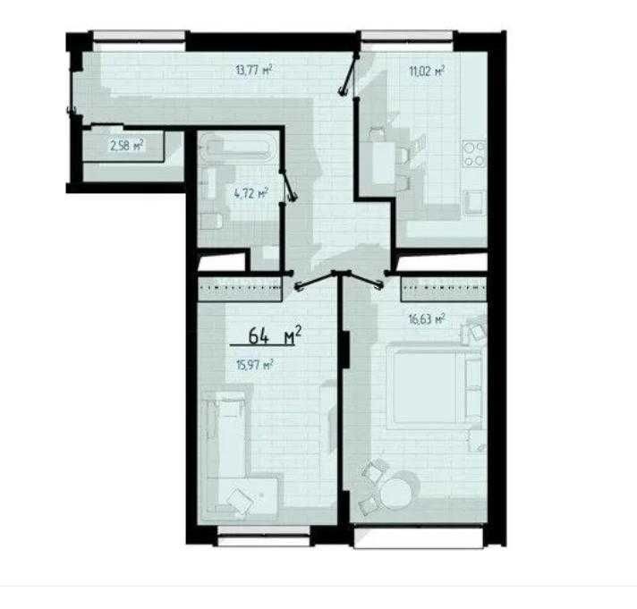 - Двокімнатна