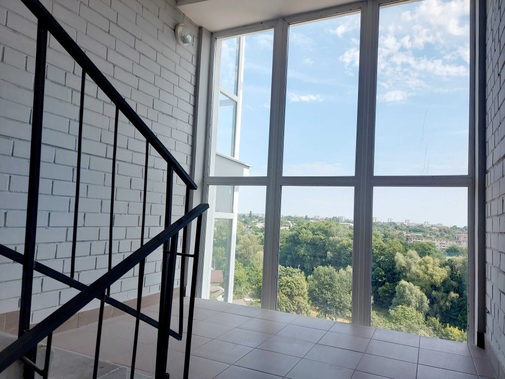 Просторі міжповерхові прольоти з панорамними вікнами і видом на Стрижень та "ГрандФлору".