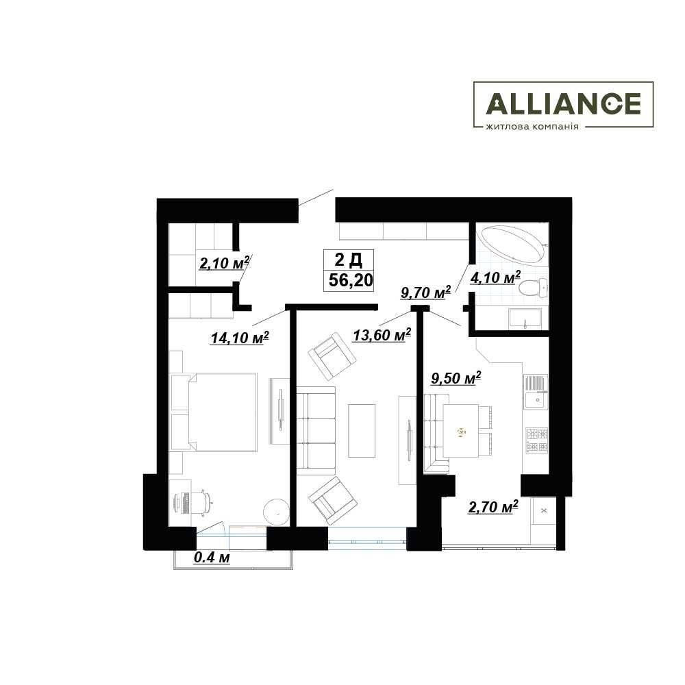 • Загальна площа 56 м2