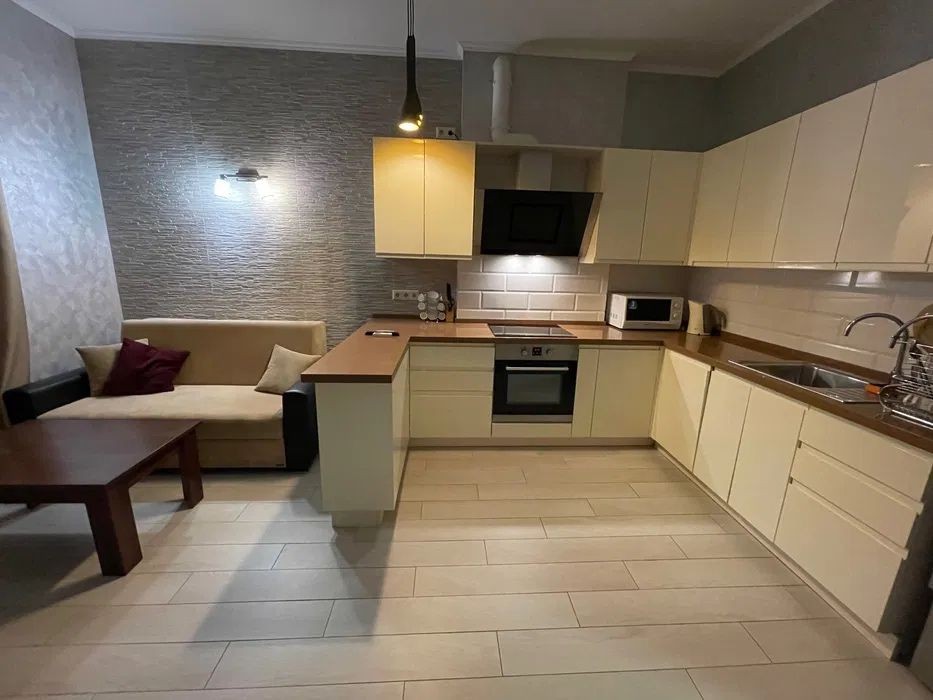 • Кухня-вітальня з розкладним диваном, робочим столом та барною стійкою