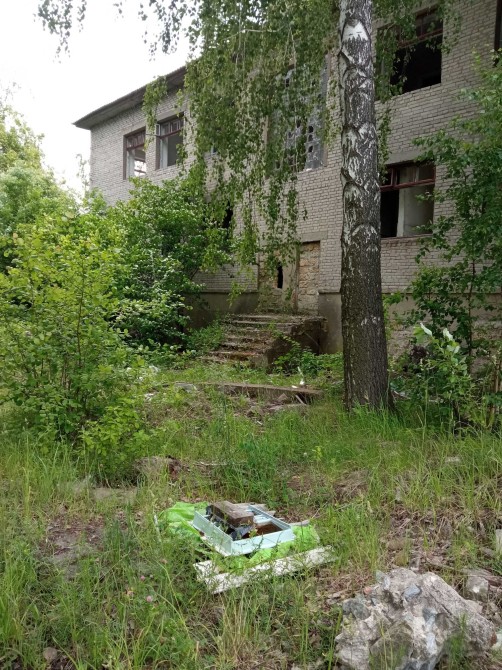 Фундамент - з/б блоки, стіни - цегла, покрівля - шифер, перекриття - з/б плити, підлога - бетон, дерево.