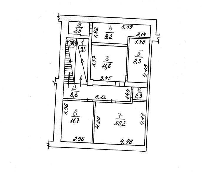Нежитлові приміщення частини першого поверху у житловому будинку . Фундамент - камінь бут, стіни - цегла, перекриття - залізобетонні плити, підлога - цементні, плитка, сходи - з/б марш. Має окремий вхід.Нежитлові приміщення підвалу -площа 83.9 кв.м