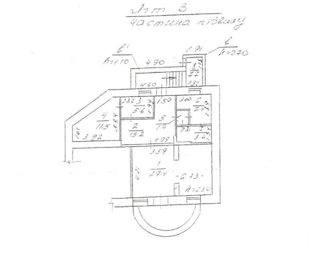 Нежитлові приміщення Літ В , загальною площею 79,4 кв.м підвалу одноповерхового будинку за адресою м. Миколаїв, вул. Пушкінська, 39/4 Фундамент камінь, стіни камінь, перекриття дерев_яні. Електропостачання, водопостачання, водовідведення – мережі наявні, договір приєднання – відсутній. Технічний стан задовільний. Приміщення має окремий вхід