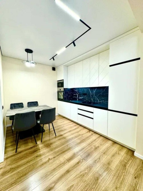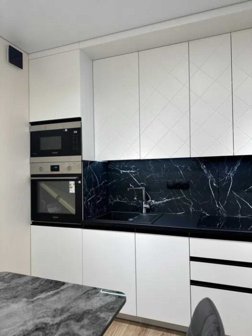 Кухня обладнана вбудованими холодильником з морозильною камерою, посудомийкою, духовою шафою, варильною поверхнею, мікро хвилевою пічкою, витяжкою, підсвіткою робочої зони. Вся техніка Samsung та Whirlpool.