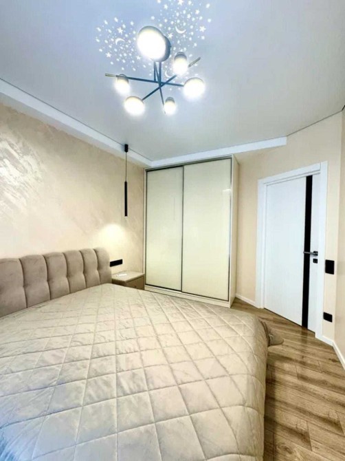 Спальна кімната має велике ліжко з підем ним механізмом для зберігання речей, зручними тумбами, величезною шафою та зручно встановленим кондиціонером.