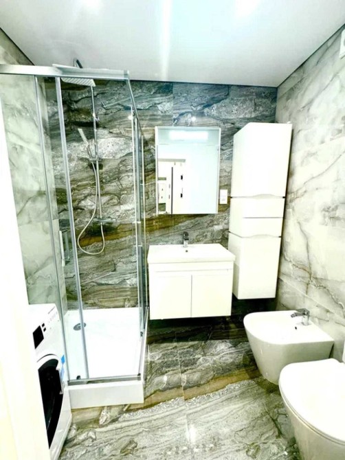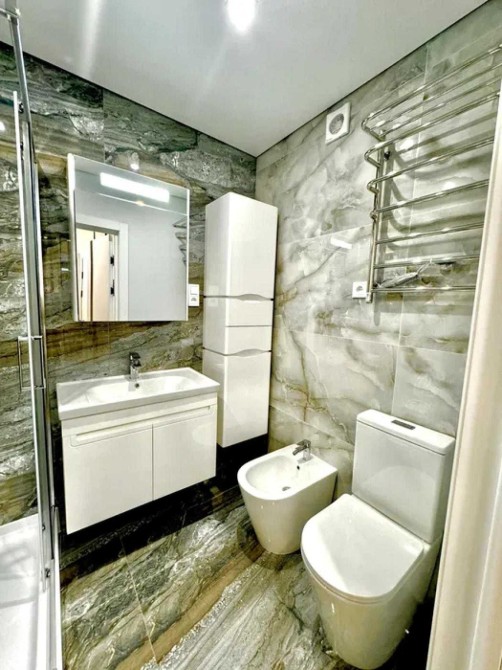 Сан вузол має підігрів підлоги, електрична сушарка, бойлер на 80л., унітаз, біде, зручну велику раковину, душову кабіну Ravak з душовою стійкою, пральна машина, шафу з місцем під брудну білизну.