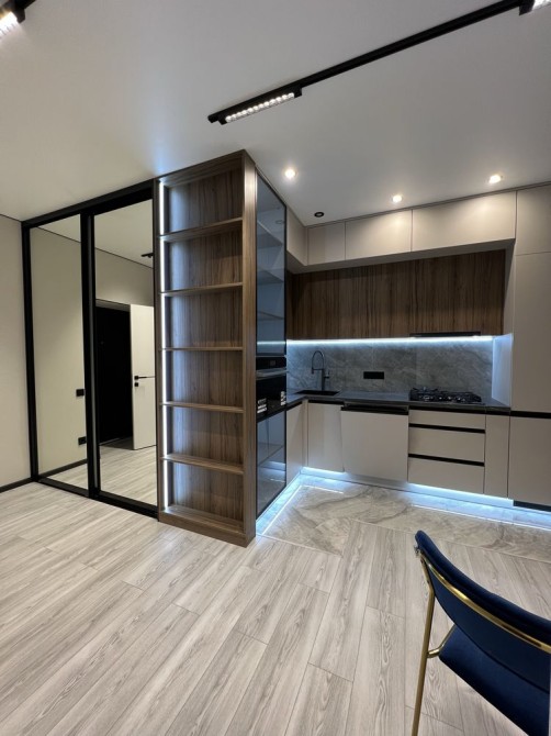 Квартира має продумане планування кухні-студії, що ідеально підходить для комфортного життя. Вона вже оснащена всіма необхідними меблями та вбудованою технікою, що дозволить вам одразу ж насолоджуватись новим житлом. У санвузлі встановлено сучасну сантехніку високої якості, що підкреслює стиль і комфорт.
