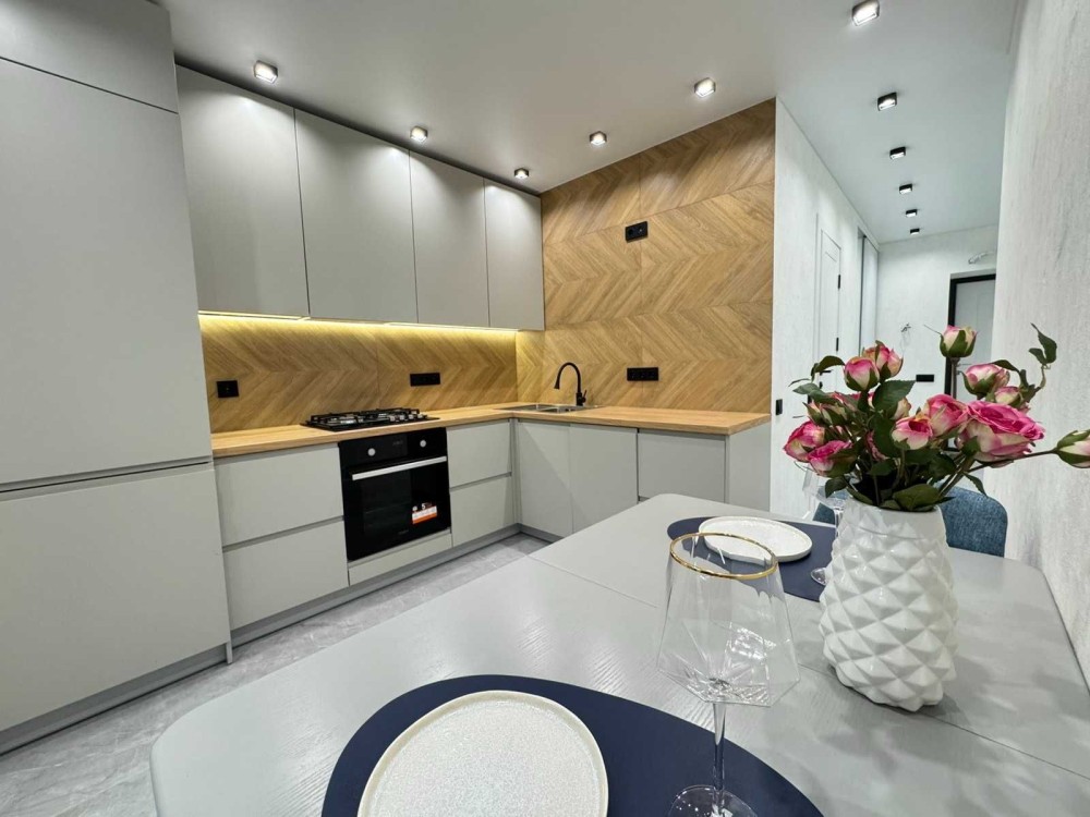 Сучасна квартира перепланована на гостьову і спальню,окрема кухня,плюс на лоджїї стильна робоча зона.