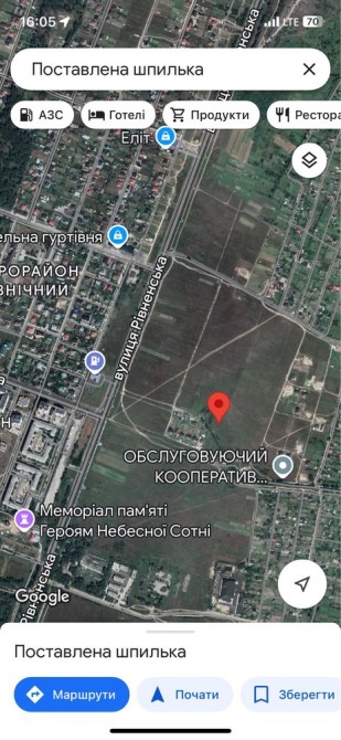Розташований в межах міста. Район АЗС Журавлина. Площа забудови 130 м.кв