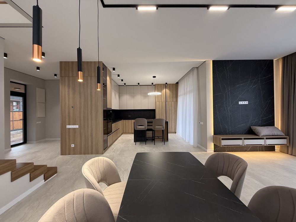 4 кімнатне планування, кухня вітальня з виходом на криту терасу, 3 санвузли, котельня