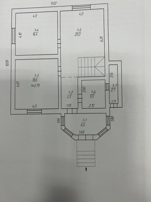 1-й поверх має залу, простору кухню, кімнату, санвузол.