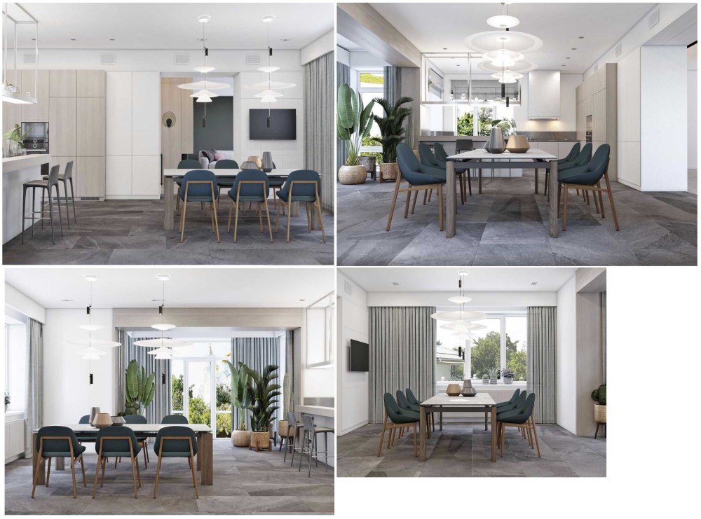 В будинку 4 спальні кімнати, 3 санвузли, великий зал, столова зона та кухня, дві гардеробних кімнати, підсобні приміщення.