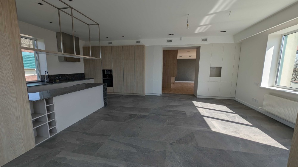 Всередині виконаний якісний дизайнерський ремонт включно з вбудованими меблюванням, оснащення санвузлів, кухні. Вбудована техніка брендів Miele, Bosch.
