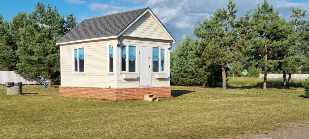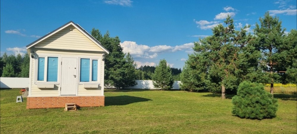 Продається новий компактний будинок (формат tiny house), розташований у тихому та зеленому місці на галявині серед дорослих сосен. Закрита територія кооперативу, доглянута ділянка, чисте хвойне повітря.