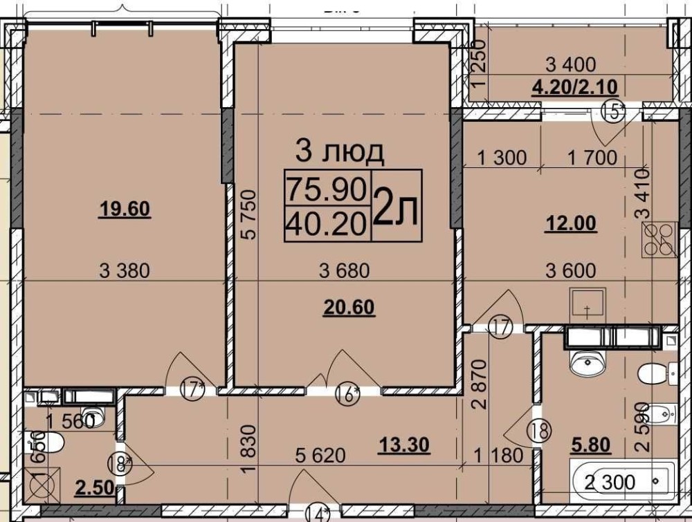 - Площа: 75,90 м²