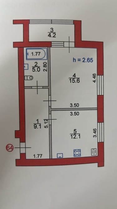 • Площа кухні 12.1 м2