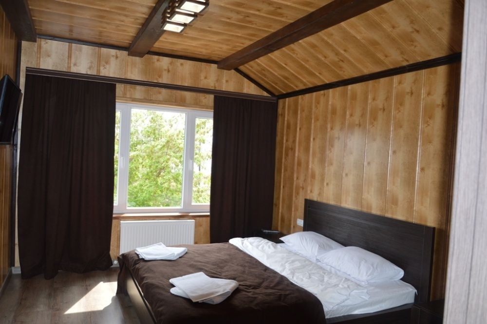 629 Великий зруб для ідеального сімейного відпочинку та святкувань Ви мрієте про незабутній відпочинок у затишному місці серед природи? Наш великий зруб — ідеальне рішення для вашої родини та друзів! Просторий будинок вміщує до 12 осіб і має все необхідне для комфортного перебування. У вашому розпорядженні: 4 затишні кімнати 2 сучасні санвузли Кухня-студія з усім необхідним обладнанням Окремий гостьовий будиночок/баня з двоспальним диваном-ліжком і санвузлом На території зрубу ви знайдете мангал, терасу з садовими меблями та гойдалку для приємного відпочинку на свіжому повітрі. Будинок автономний: оснащений автоматичним генератором, скважиною та газовим опаленням. Поряд розташовані ліс і річка, що додає особливої чарівності цьому місцю. *Умови оренди: Мінімальний термін оренди — 2 доби Вартість за 2 доби: 12000 грн + 1500 грн за прибирання Кожна додаткова доба:7000 грн Оренда бані: 1000 грн . *Важливо: Попереднє замовлення є обов’язковим. Забронюйте свій відпочинок вже сьогодні і насолоджуйтеся спокоєм та комфортом у нашому зрубі!