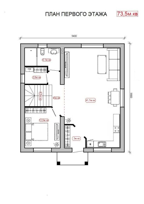 Гостиная 40м.кв, гардеробная и топочная.