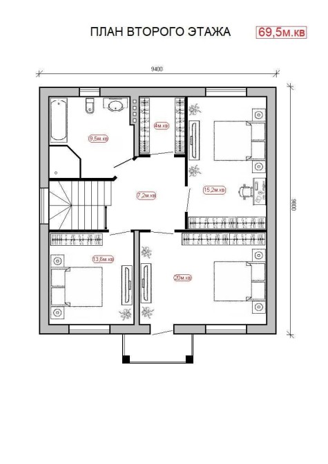 Распланирован на 4 спальни
