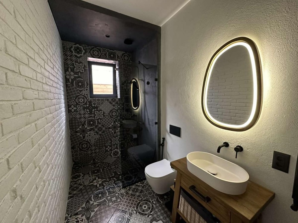 заполнение наружных стен газоблок, внутренние стены полнотелый глиняный кирпич. Система многослойной стены. Естественная вентиляция. Полное и правильное утепление фасада, цоколя, отмостки, полов, оконных откосов снаружи и внутри. Полная гидро-пароизоляция фундамента, отмостки, полов и цоколя. Окна Salamander с правильной системой теплого монтажа.