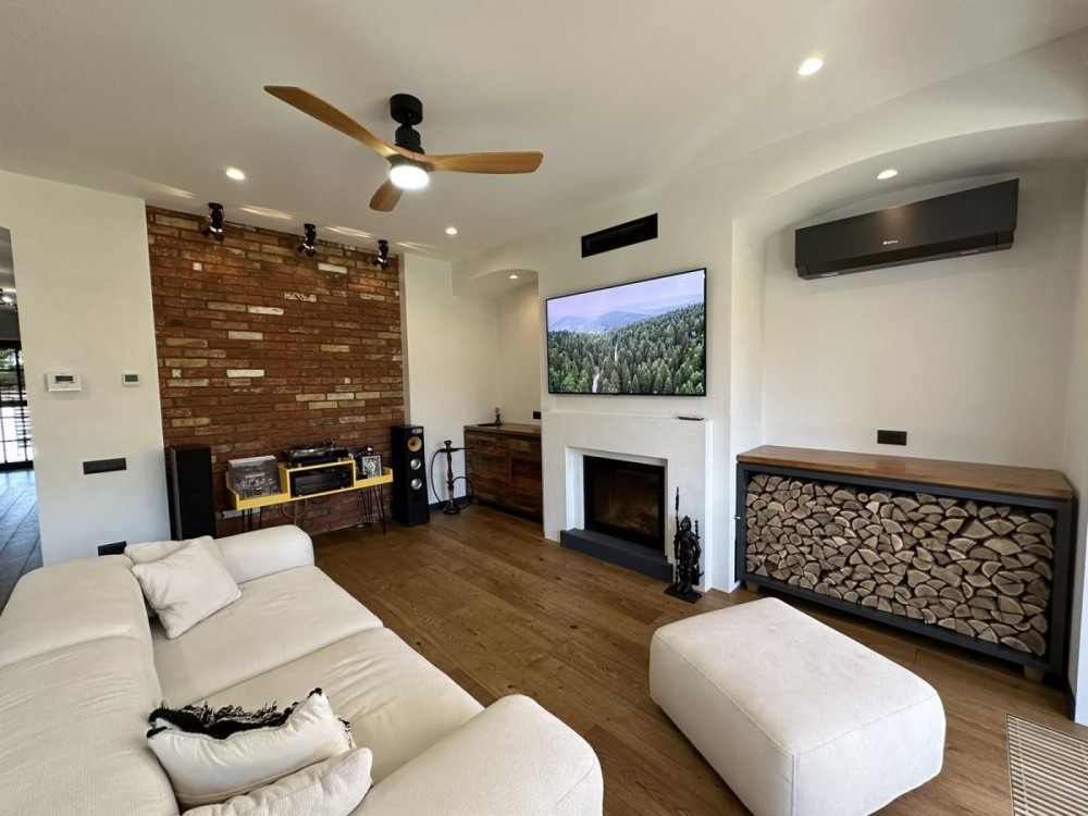 Действующий камин, способный отопить весь первый этаж. Дымоход Schiedel.