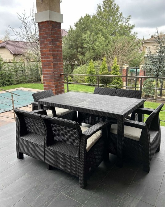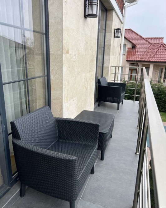 На терассе расположена зона отдыха с удобными креслами и барбекю , рядом бассейн 8 * 3.5 метра.