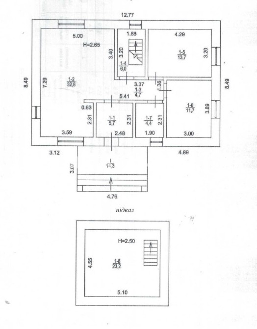 Продається недобудований двоповерховий будинок в Баришівці за адресою вулиця Одеська 1 - Б. Будинок знаходиться на земельній ділянці в 10 соток. Земельна ділянка приватизована, має прямокутну форму 25 на 40 м, майже горизонтально рівна, різниця по діагоналі складає не більше 30 см по висоті. Будинок має монолітний армований ленточный фундамент. При армуванні фундаменту та стін використовувалась арматура 1,2 см. Стіни виконані з пеностирольних блоків де всередину вставлена арматура і залита бетоном. Перекриття між першим та другим поверхом та горищем виконано з дерев'яних балок 20 на 30см. Будинок покритий металочерепицею. стоять металопластикові вікна та технічні вхідні двері. На земельній ділянці знаходиться приватна водяна скважина та заведена вода в будинок. Будинок підключений до зовнішнього електропостачання з величиною прогнозованої приєднаної потужності 7 кВт напруга приєднання 380 B. Зовнішній розмір будинку по ширині складає 11,5 м, по довжині 13,4 м. Жила площа першого поверху складає 127,29 м². З них кухня складає 32,63 м², зала складає 36,47 м², кімната складає 23,13 м², туалет складає 11,52 м² 52, коридор займає 23,54 м². Висота стелі 3 м. Другий поверх мансанровий, де по площі підлоги має таку саму квадратуру 127,29 м², як і перший поверх, але в кожній висота однієї зовнішньої стіни складає 1,75 м за рахунок нахилу даху. Розташування кімнат ідентичне до першого поверху. Висота стелі 2,75 м. За рахунок пеностирольного покриття стін сам будинок дуже є енергозберігаючим і потребуватиме невеликі витрати на обігрів. Oбігрів будинку планувався електричний, так як будинок має низьку втрату тепла, але і можливі інші варіанти обігріву, такі як газ або комбінації дров'яного каміну та електрообігріву. Газопровід іде по вулиці. За рахунок великих вікон будинок отримує достатньо багато сонця і кімнати всі світлі. Великі кімнати та коридори дають багато креативного простору, щоб створити житло яке підходить власне для вас. Наявні документи на земельну ділянку та будинок: - Державний акт на право власності на земельну ділянку виданий на власника будинку. - Будівельний паспорт на забудову земельної ділянки. В двох екземплярах. Виданий на власника будинку. - Проект на забудову земельної ділянки в двох екземплярах. Виданий на власника будинку. - Проект зовнішнього електропостачання та технічне рішення видане на власника будинку. Ціна будинку 30500 євро. Можливий розумний торг. Контактні дані WhatsApp: +4917630793718 Email: skorba-oleg@ukr.net Oleg