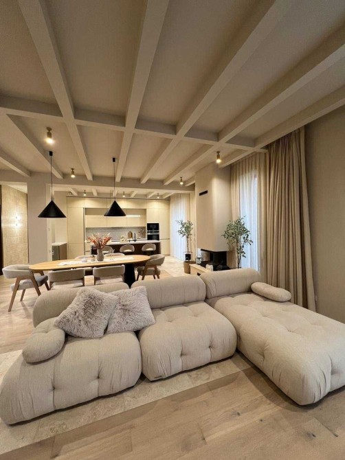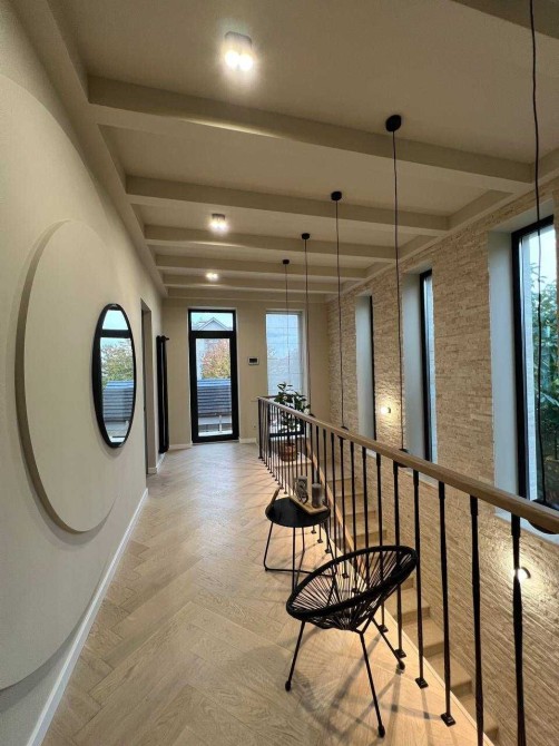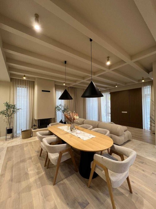 Ремонт выполнен в едином стиле, панорамные окна наполняют дом естественным светом и теплом.
