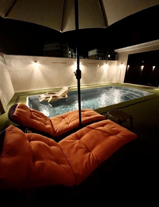 уютный двор с бассейном с подогревом,