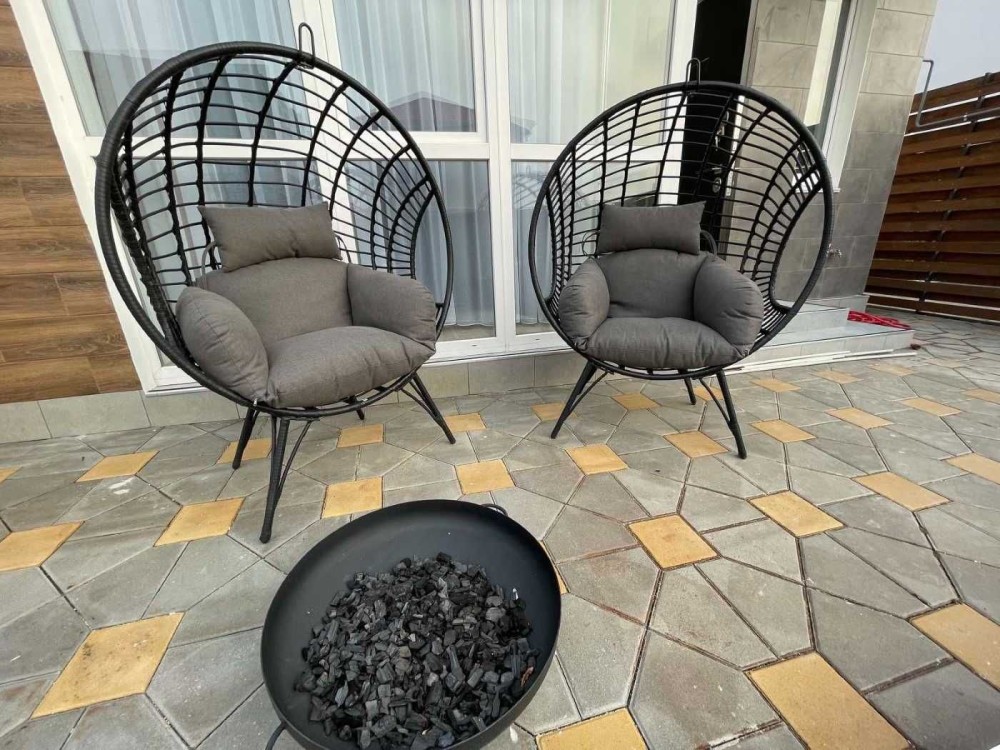 Территория огорожена, выложена тротуарная плитка парковка на 2 машины. Зона барбекю, мангал.