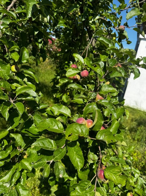Кожен рік на фото видно який там урожай від саду багато яблук груш слив і виноград ще вишня є малина
