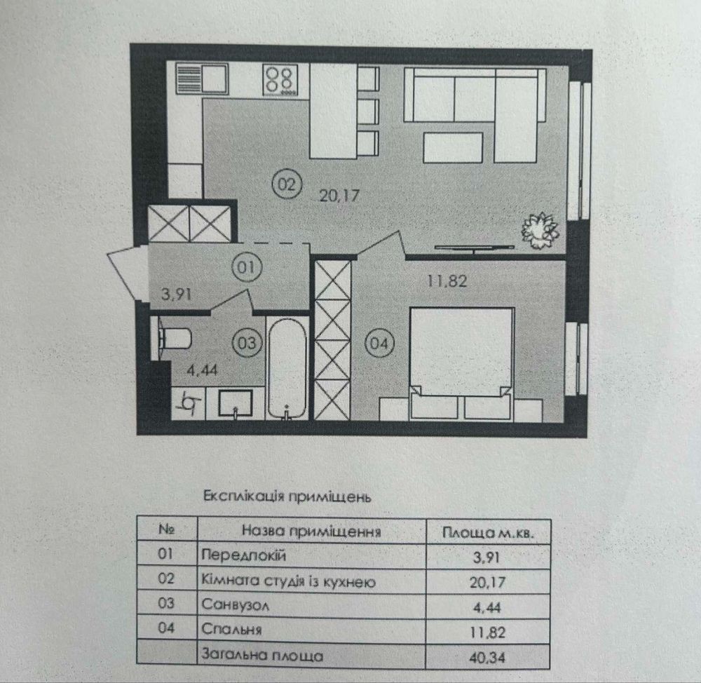 • Загальна площа 40.5 м2