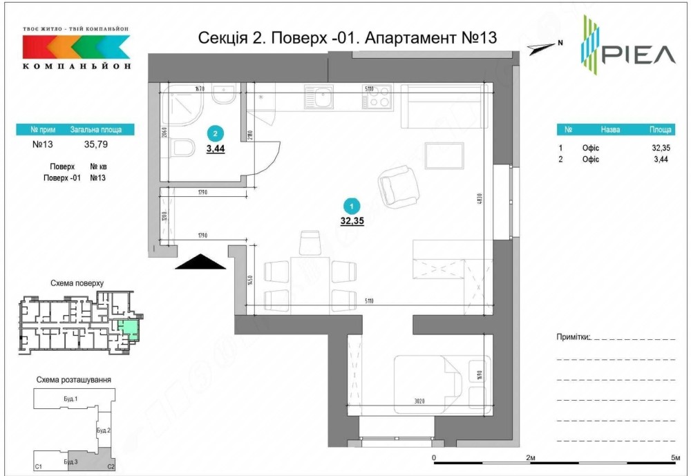 • Загальна площа 35 м2