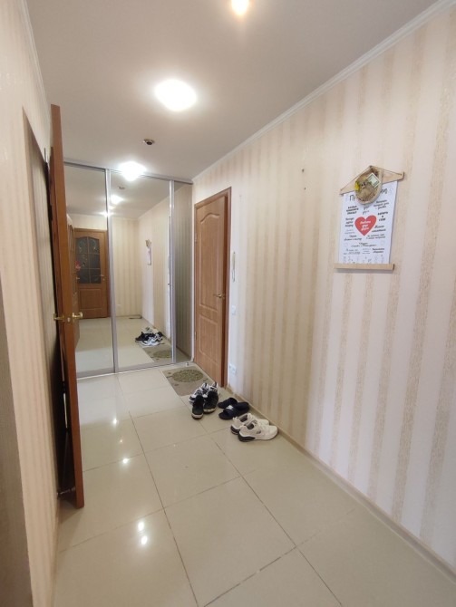 Велика шафа-гардеробна у прихожій. Квартира дуже тепла. Є великий закритий тамбур. Спокійні сусіди.
