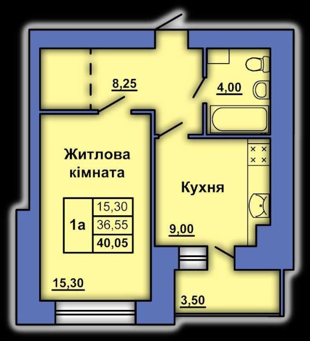 • Загальна площа 40 м2