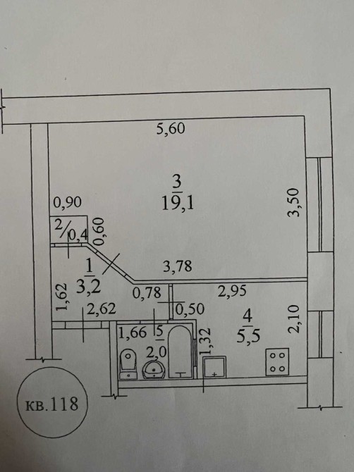 • Площа кухні 5.5 м2