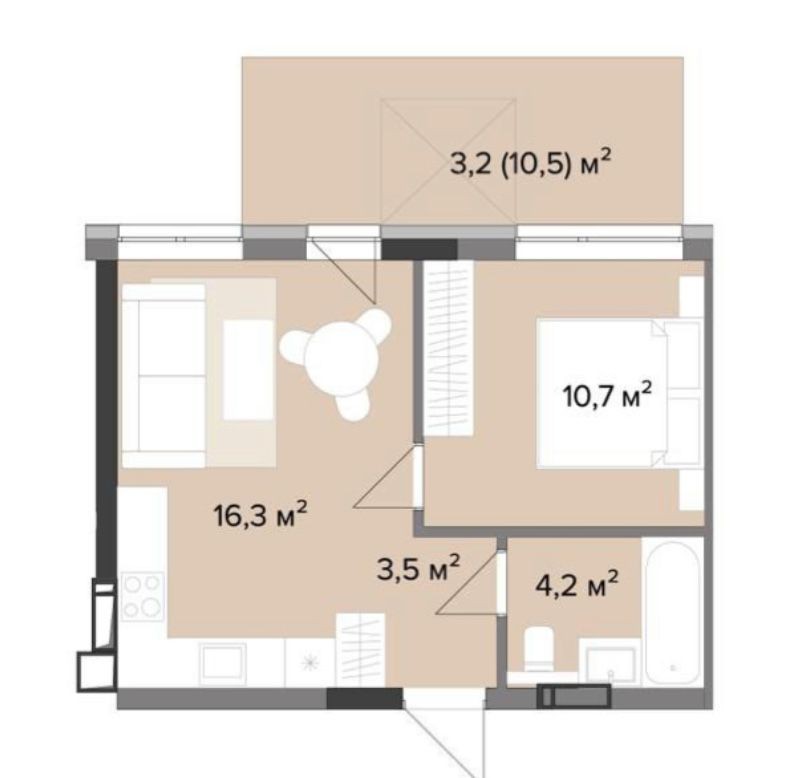 • Загальна площа 38 м2