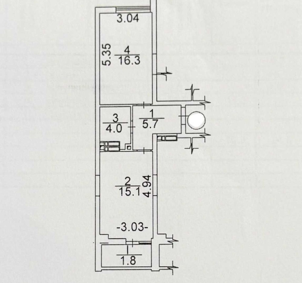 Загальна площа - 43м2, житлова - 16.3м2.