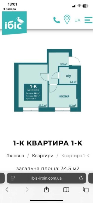 Однокімнатна квартира в ЖК Ібіс