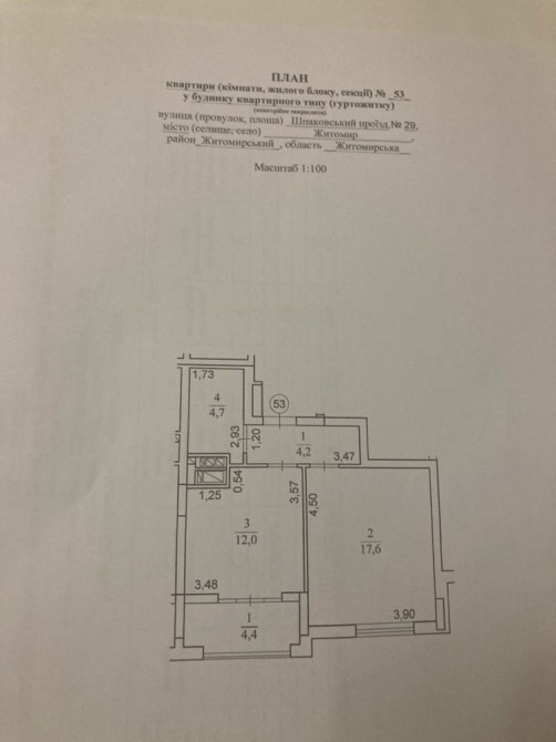 Загальна площа: 42.9 кв.м.