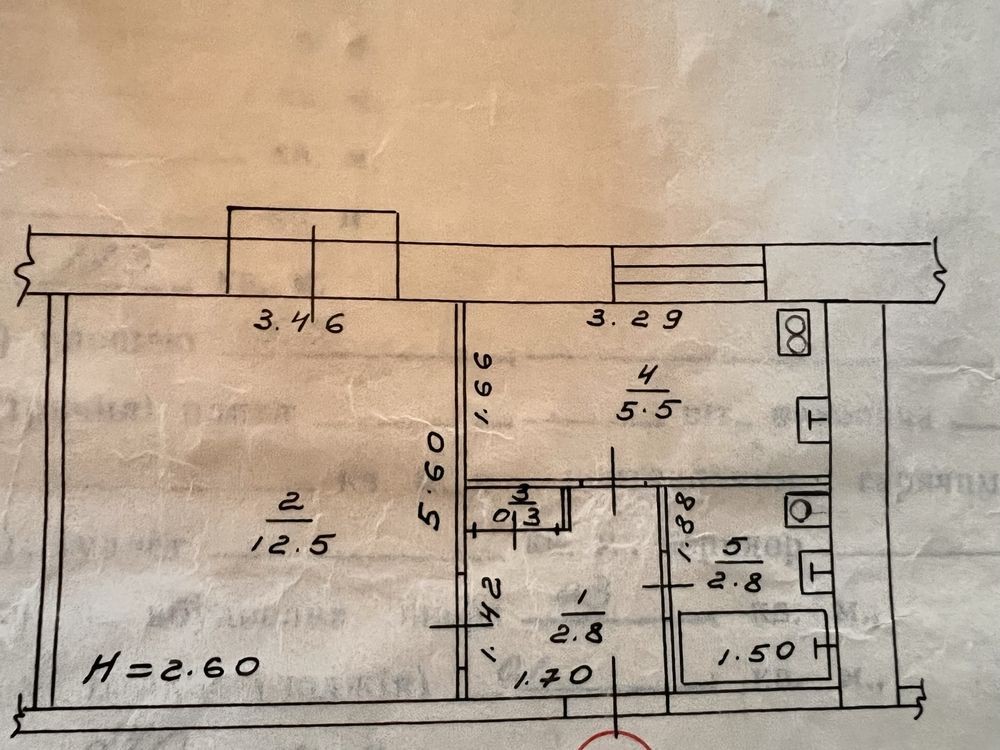 Висота приміщень 2.60м