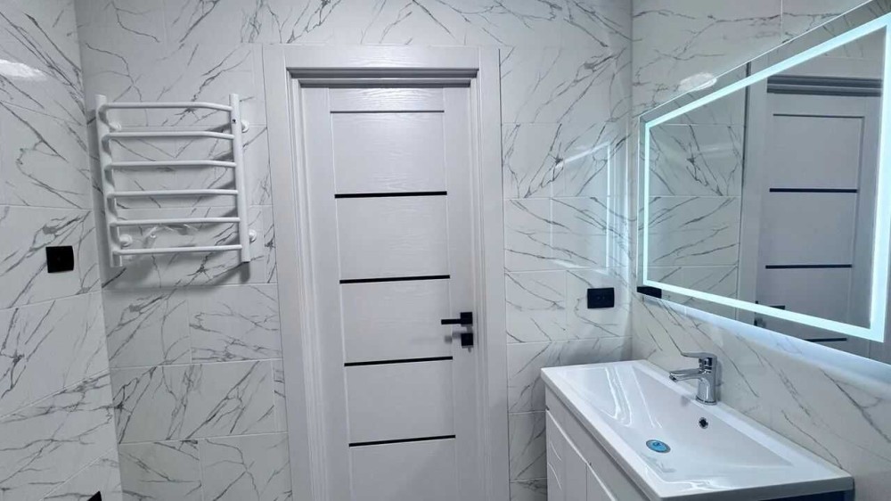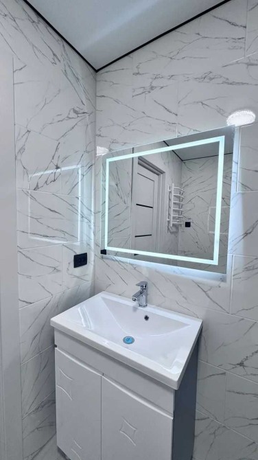 санвузол повністю укомплектований: дзеркало з підсвіткою, інсталяція, рушникосушка, душова кабіна