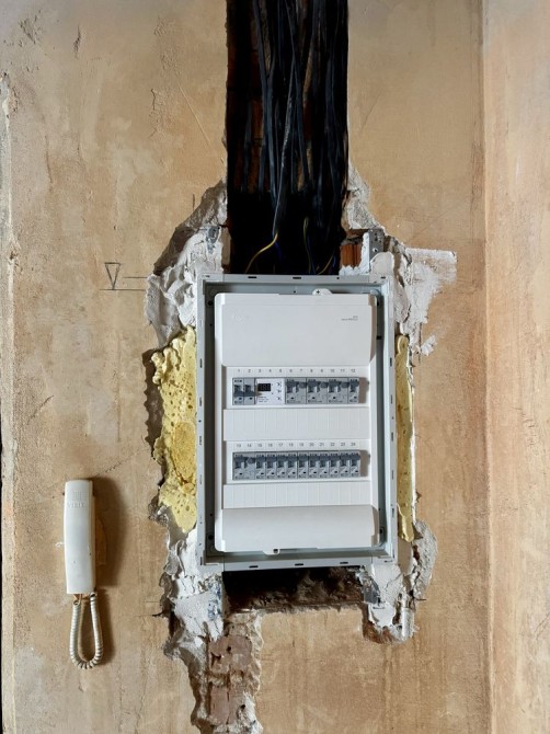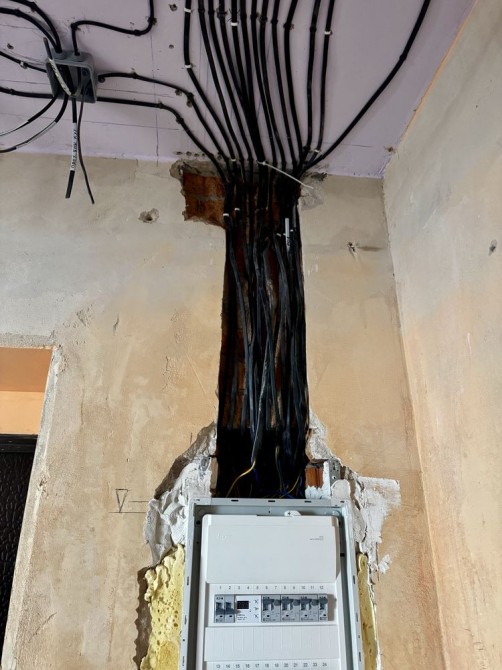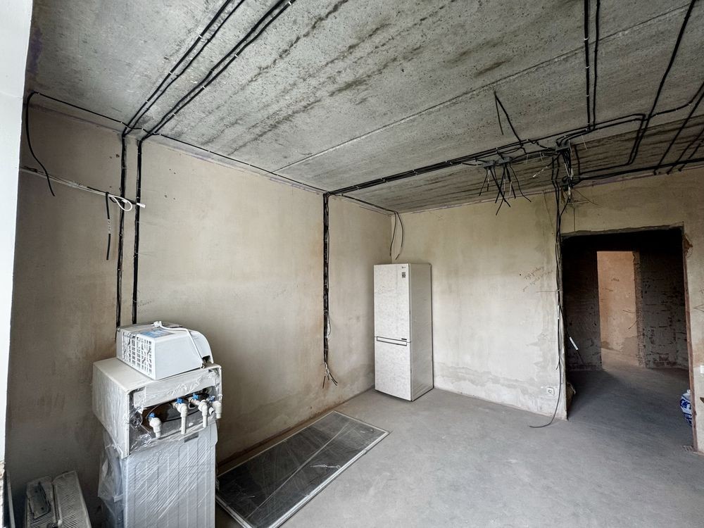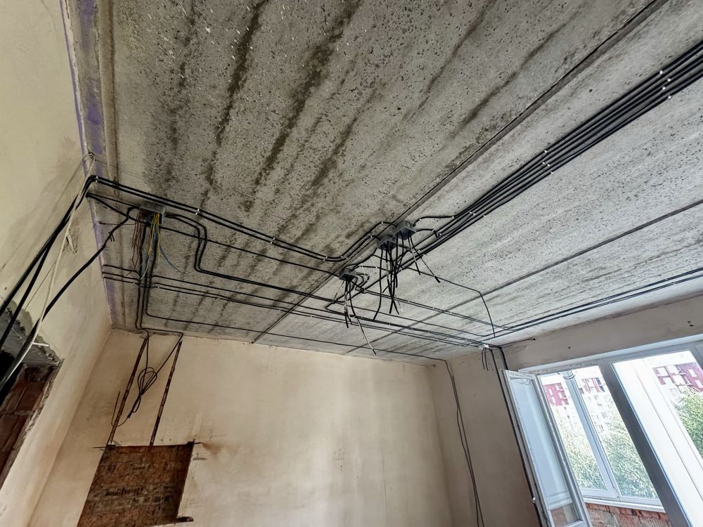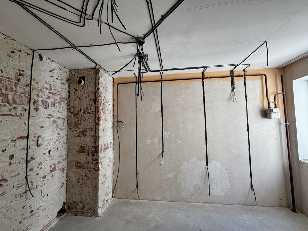 У квартирі попередньо зробили дизайн проєкт та по ньому розвели електрику. Є котел та радіатори.